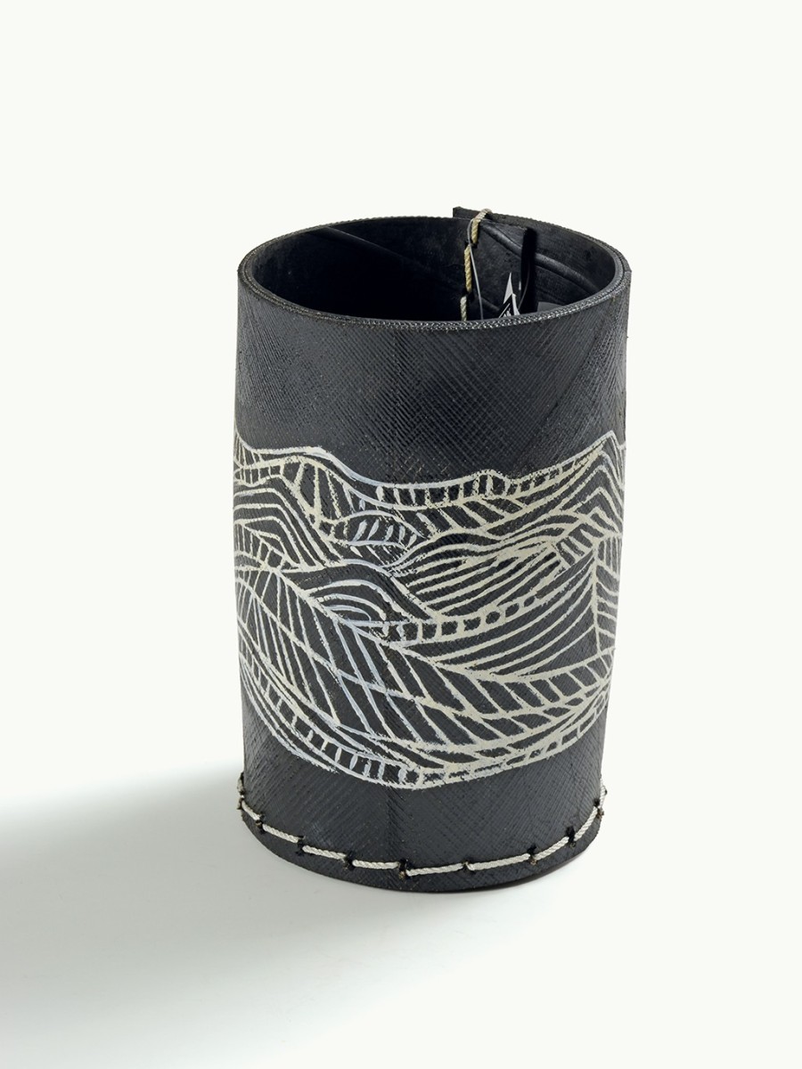 COVERED UTENSIL HOLDER WITH "MOUNTAIN" DESIGN · RECYCLED TIRE