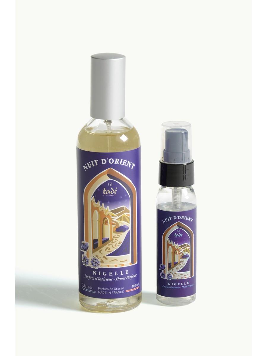 Travel-size miniature spray of the Nuit d'Orient interior perfume. A concentrated freshness with oriental notes of black cumin flower, to take with you wherever you go!
