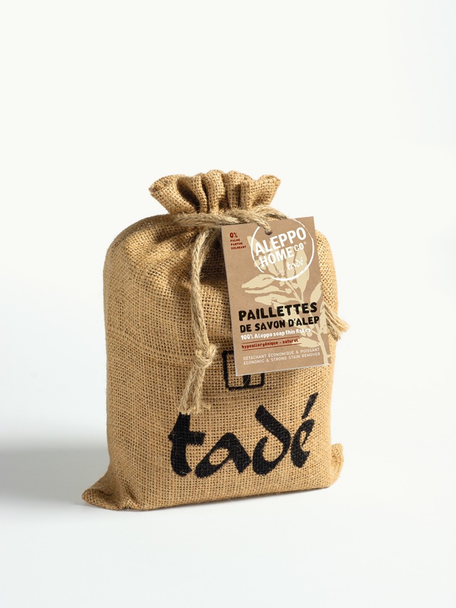 Authentic Aleppo soap 750g, packaged in thin flakes perfectly dried and dehydrated, for a natural laundry experience.