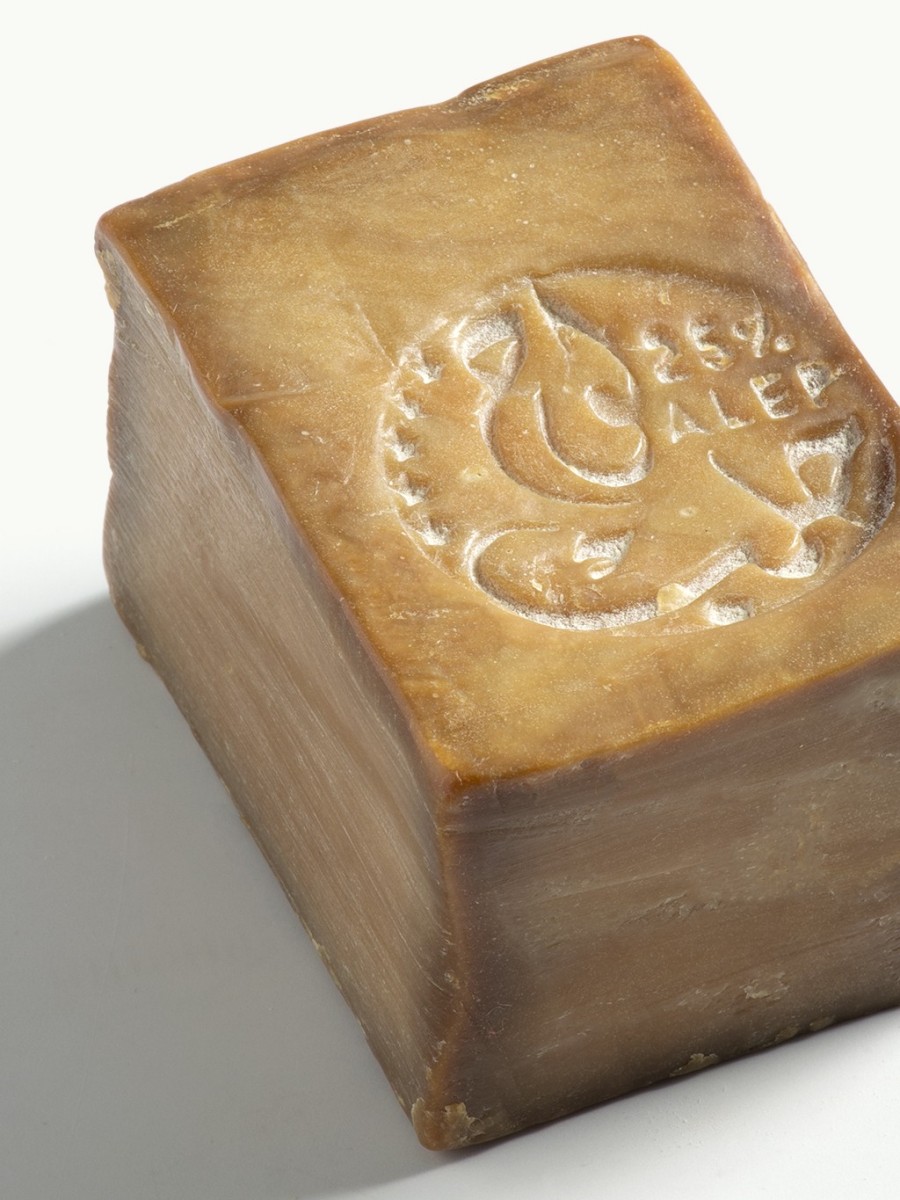 Alep est la dernière ville à perpétuer la fabrication du véritable savon au laurier. Cet "or vert", brun et tendre à l'extérieur, vert et plus moelleux à l'intérieur, très enrichi en acide laurique, est estampillé à la main du sceau du maître savonnier, garantie de son origine. Sa traçabilité est également garantie par Tadé depuis 1995.